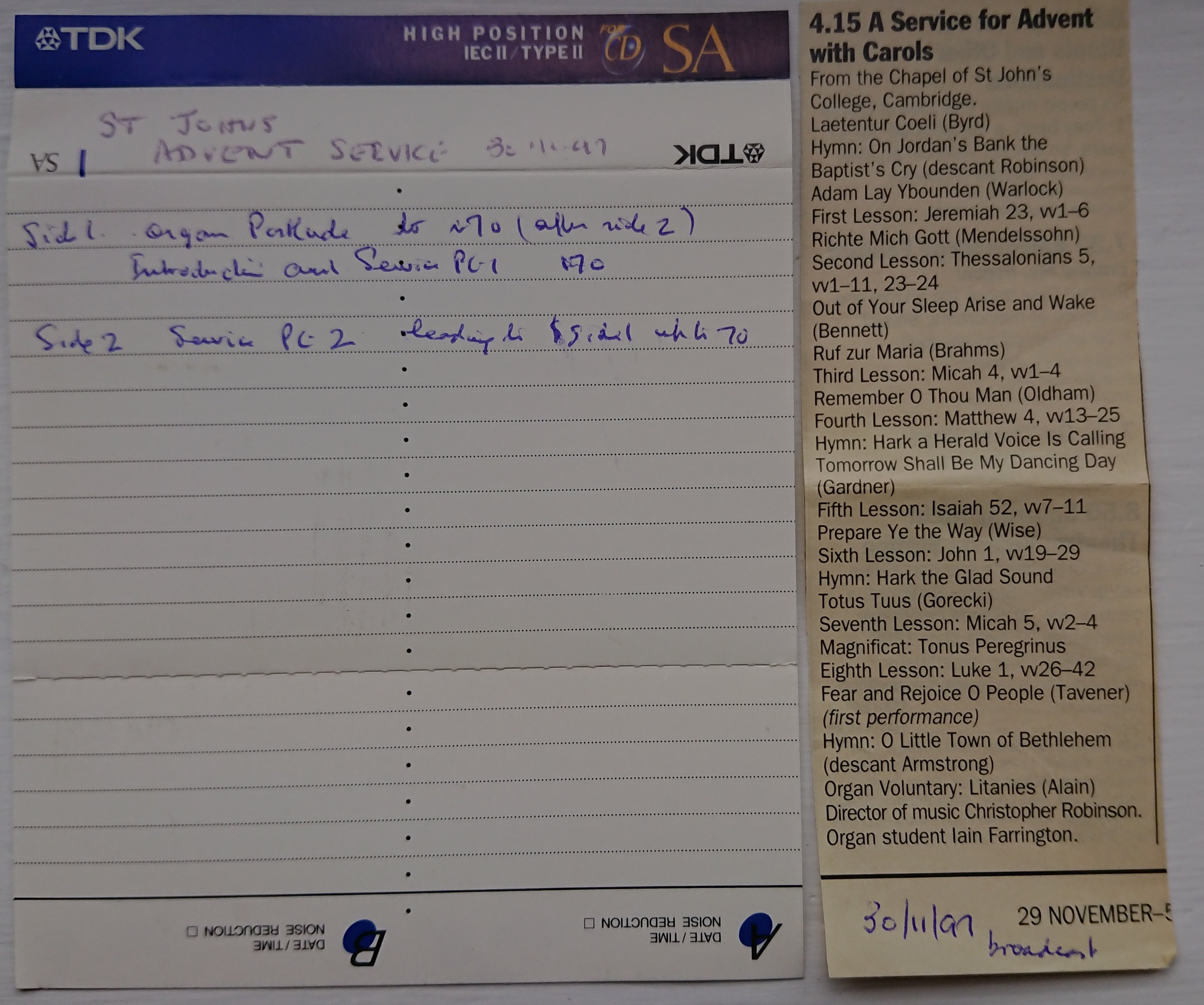 The Choir of St John's College, Cambridge - Advent Carol Service 1997.opus