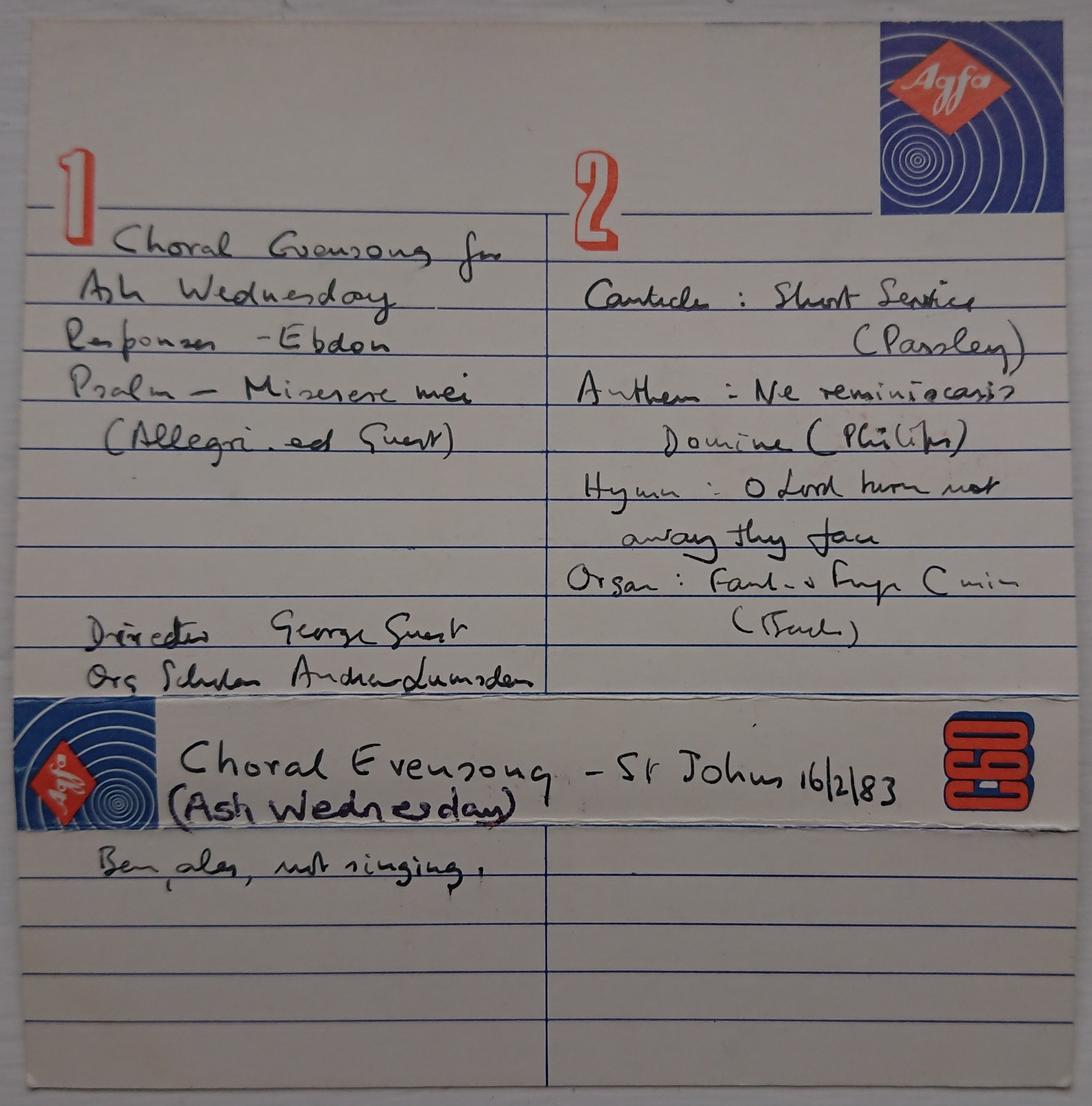 The Choir of St John's College, Cambridge - Evensong for Ash Wednesday 1983.opus